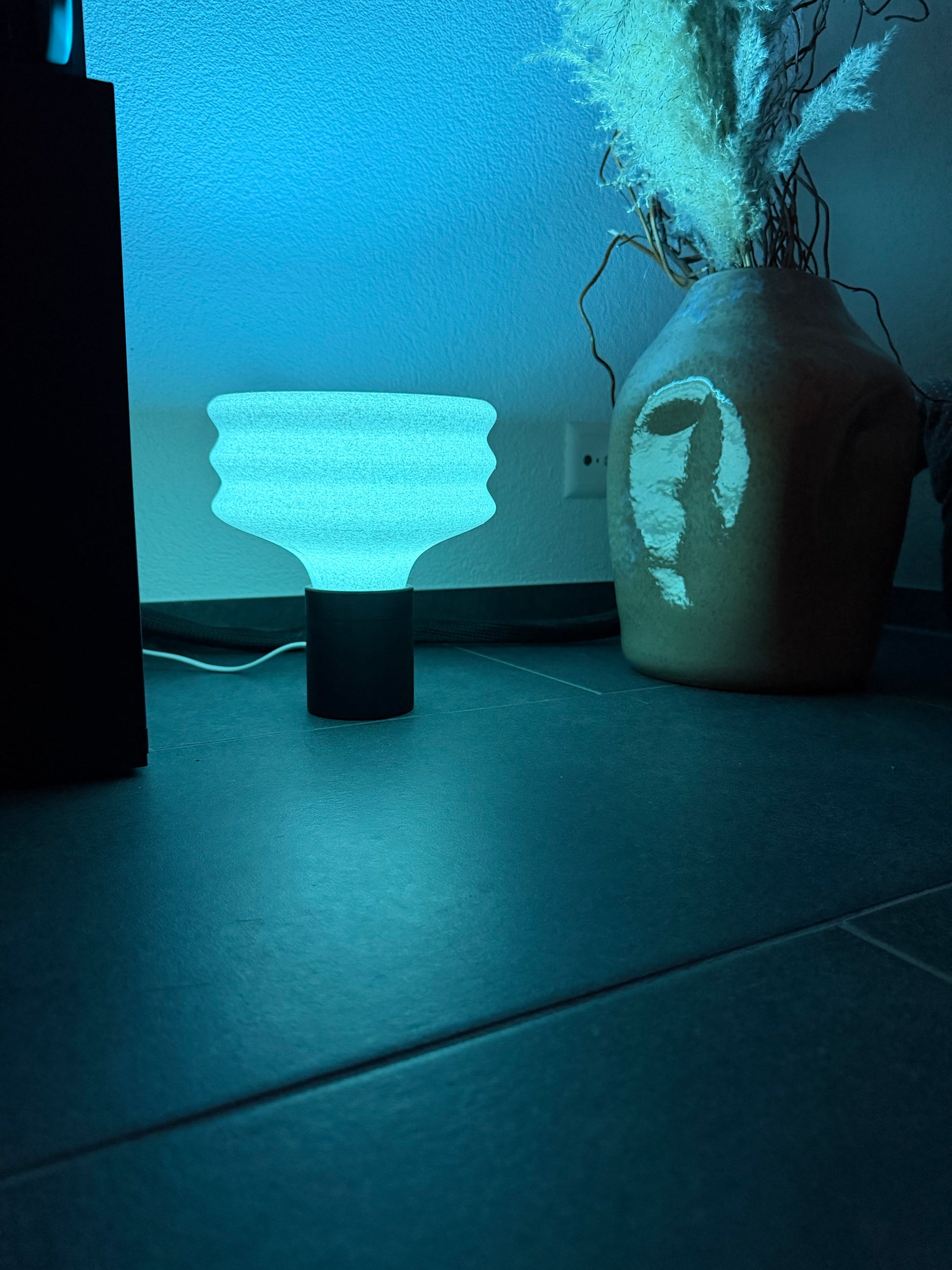 Wir empfehlen den Einsatz einer RGB-Lampe (z. B. Philips Hue oder vergleichbare Smart-Home-Leuchtmittel), um Lichtfarbe und Stimmung individuell anzupassen und die Lampe in bestehende Smart-Home-Systeme zu integrieren.