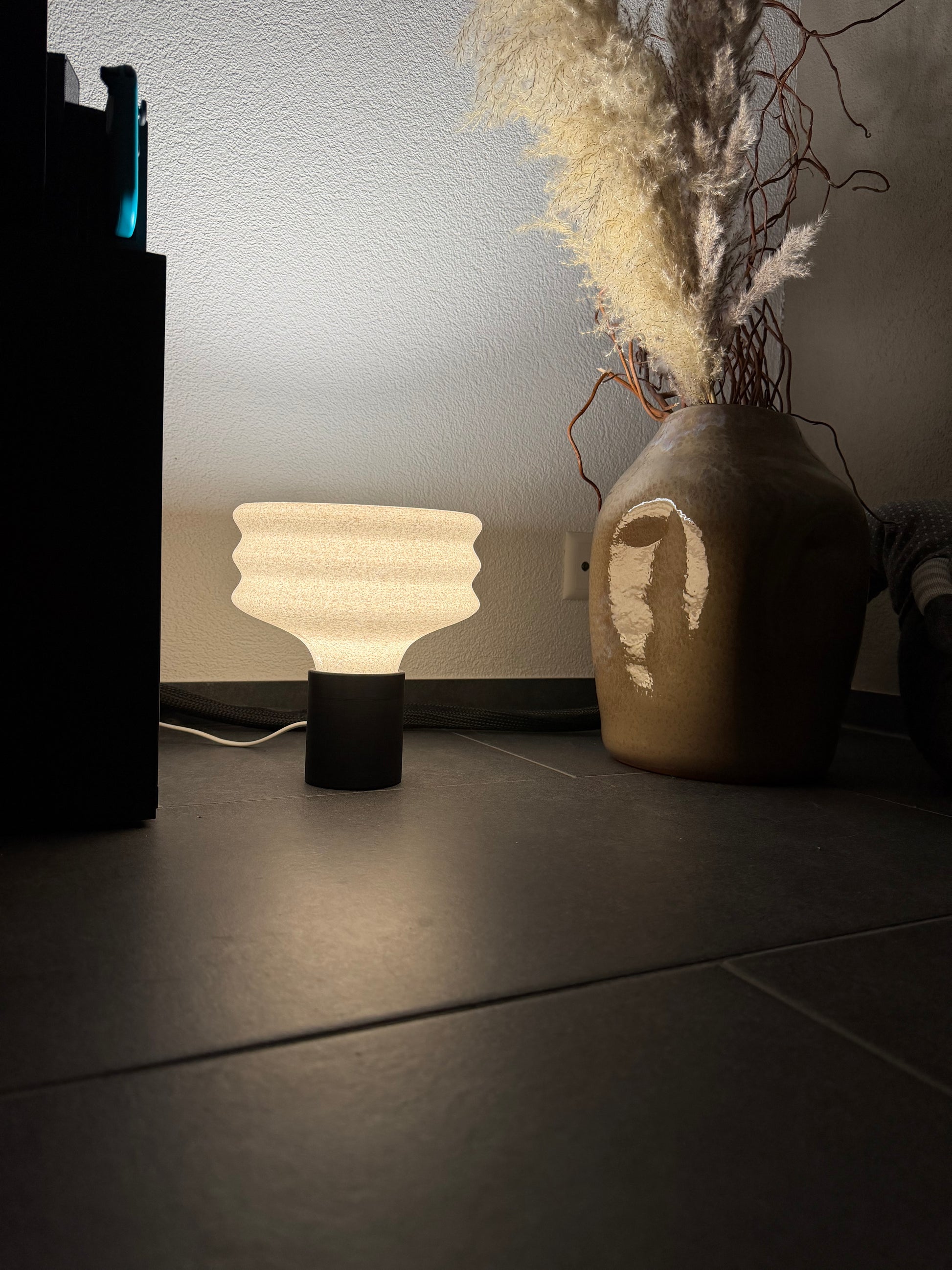 Im eingeschalteten Zustand erzeugt Lentus ein warmes, angenehmes Licht, das eine ruhige und gemütliche Atmosphäre schafft. Die Form wirkt bewusst zurückhaltend und fügt sich harmonisch in moderne wie auch natürliche Wohnkonzepte ein.